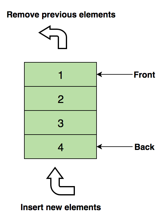 Here’s an image of Queue containing four data elements (1, 2, 3 and 4), where 1 is at the top and will be removed first: